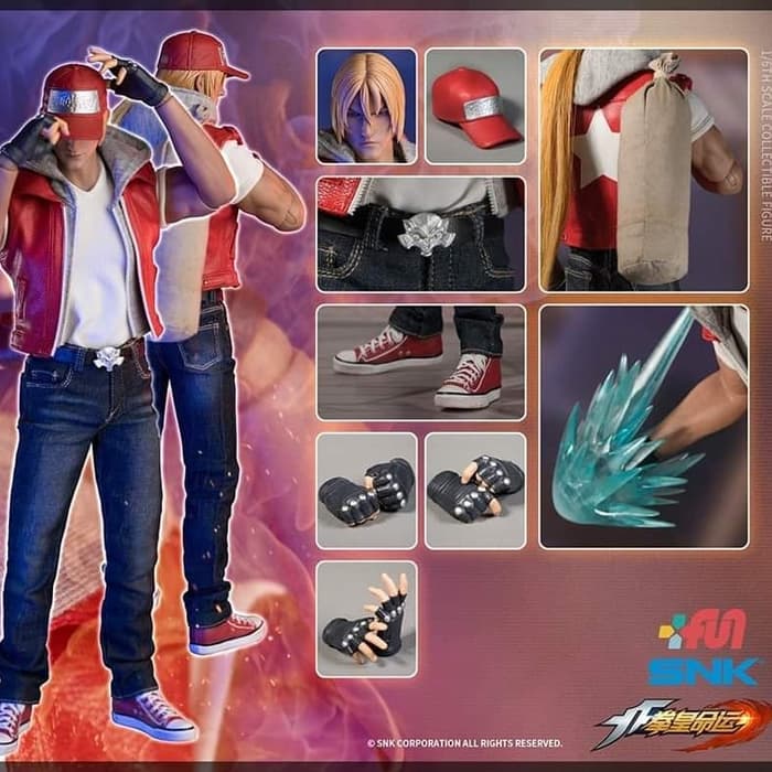 Superb representation of terry bogard in action figure form. Sold out terry bogard is the main and most iconic character of the kof series and he appears as a playable player in every kof game to date. Terry bogard is a video game character created by snk and is the main character of the fatal fury series. If you are a fan of the fatal fury and kof series this is a must buy.